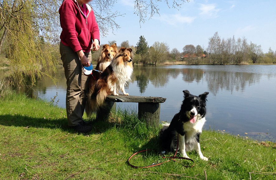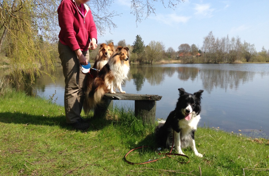 Jeg var jo på besøg hos sheltiedrengene forleden, og vi fik gået en dejlig "morgen"tur (om formiddagen... ). Veninden bor lige ved siden af de her vildt flotte søer, oprindelig grusgrave, så der måtte jo næsten ta's et klassebillede, godt nok kun med mobilen... (@Spilop - Åsa har 200-500'eren, eller har haft i hvert fald, og har brugt det meget. Hun deler sikkert ud af erfaringerne!)